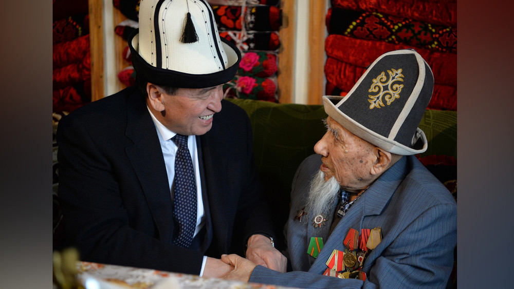 Президент Жээнбеков в рамках поездки в Баткенскую область навестил ветерана ВОВ Кошона Байматова