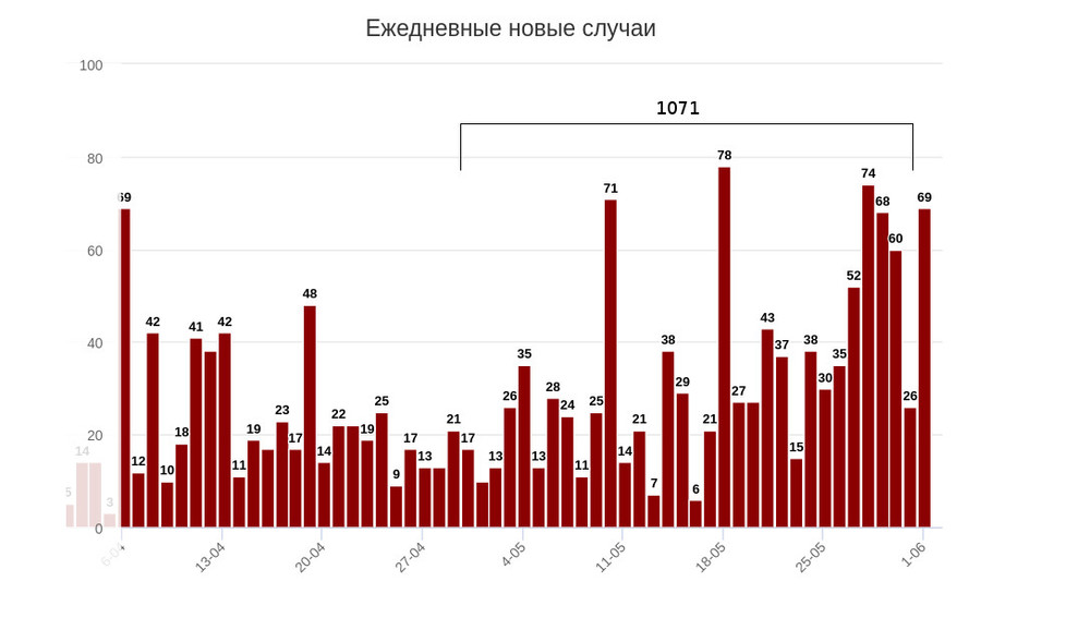 График по дням — В мае в Кыргызстане выявлен 1071 случай коронавируса