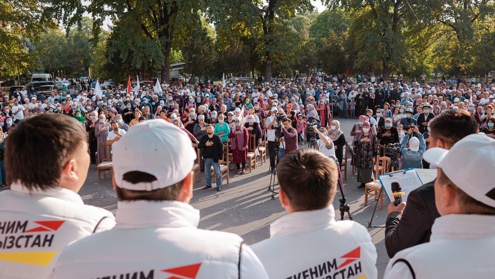 Бишкек (АКИpress) – Уже по доброй традиции с исполнения национального гимна началась встреча кандидатов в депутаты от партии «Мекеним Кыргызстан» с избирателями в городе Жалал-Абад. Выслушать и поддержать кандидатов собралось много желающих. Ахматбек Кельдибеков в своем выступлении поблагодарил избирателей и рассказал о планах партии. Об этом 27 сентября сообщает партия «Мекеним Кыргызстан».