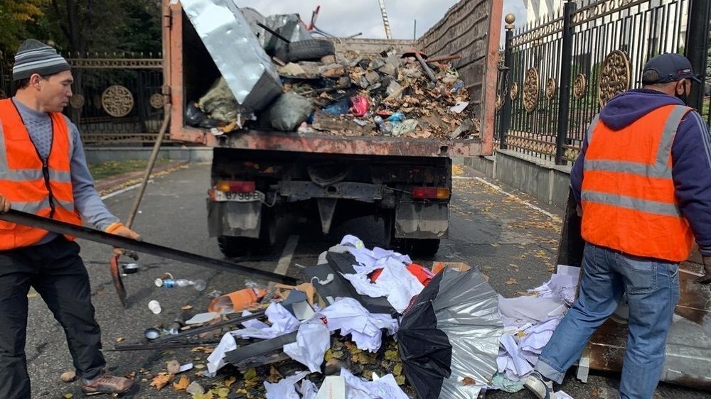 В центре Бишкека после митинга собрали около 20 тонн мусора. Фото