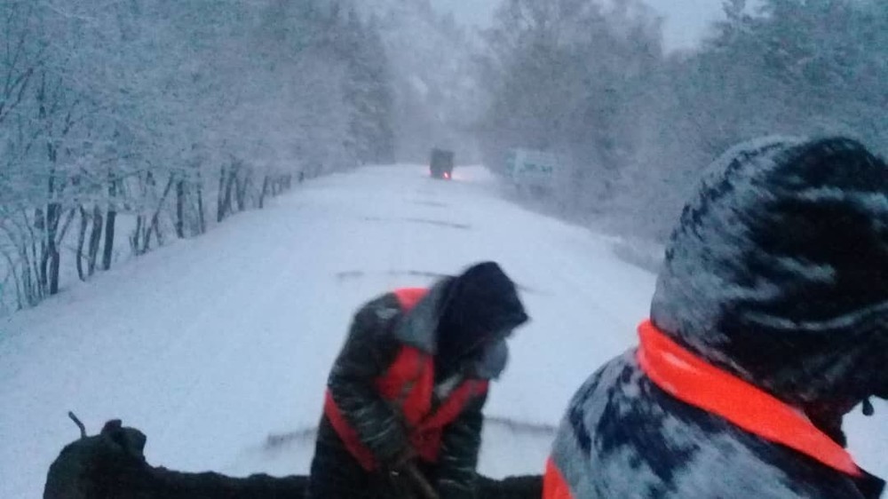 На протяжении всей автодороги Бишкек—Ош идет обильный снегопад, - Минтранс (фото)