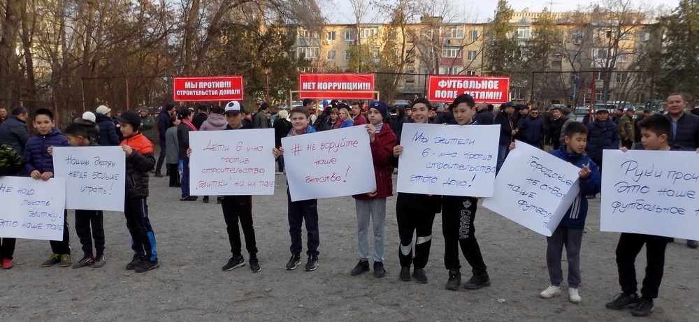 Строительство элитки на месте футбольного поля в 6 мкр Бишкека приостановили после митинга (фото)