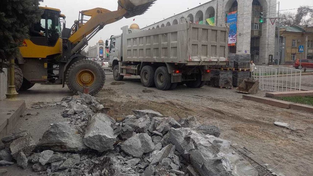 Возле Белого дома меняют брусчатку