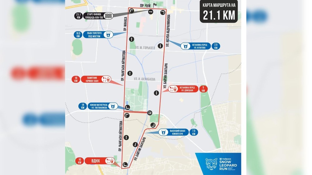 Какие улицы Бишкека будут перекрыты во время забега? Карта