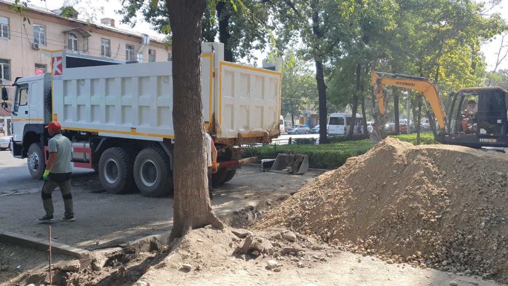 Возле Ошского рынка начали строить тротуар