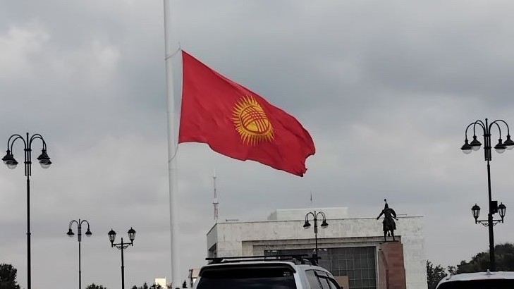 На площади Ала-Тоо приспустили флаг Кыргызстана из-за сильного ветра
