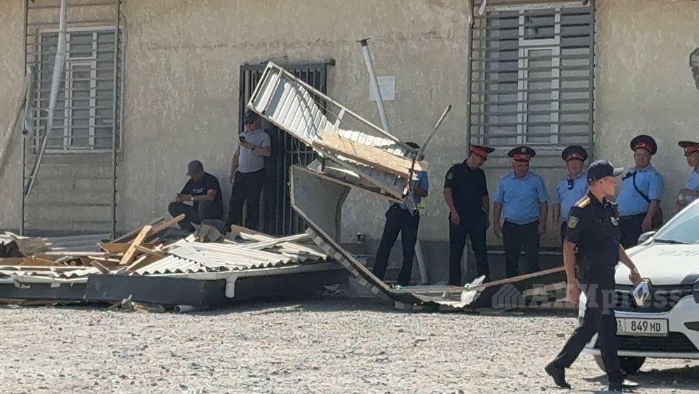 В селе Кок-Жар сносят объекты. На месте находятся сотрудники милиции