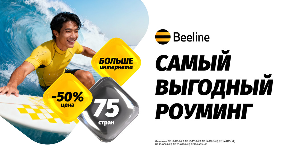 Куда бы вы ни отправились — в отпуск, в командировку, в тур или в образовательную поездку — с роуминг-пакетами Beeline мобильный интернет всегда под рукой. Это значит, что вы сможете свободно общаться, работать, искать нужную информацию, пользоваться онлайн-сервисами и делиться впечатлениями в соцсетях.