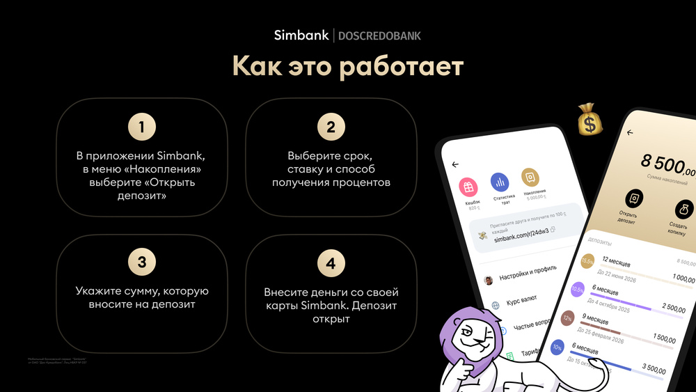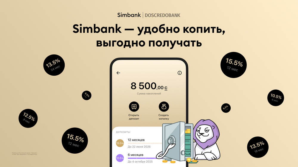 «Мы хотим, чтобы банковские продукты были не только выгодными, но и максимально понятными. Депозит в Simbank — это возможность получать доход без лишних сложностей, а управление всегда под рукой в приложении», — отмечают в Simbank.