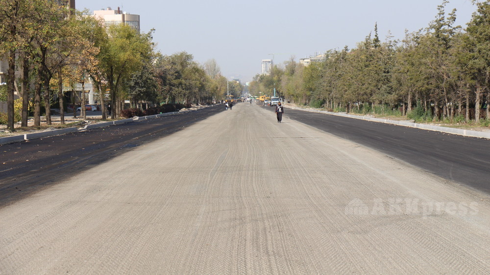 На проспекте Ч.Айтматова началась укладка асфальта на участке от Южной магистрали до Ахунбаева. Фоторепортаж
