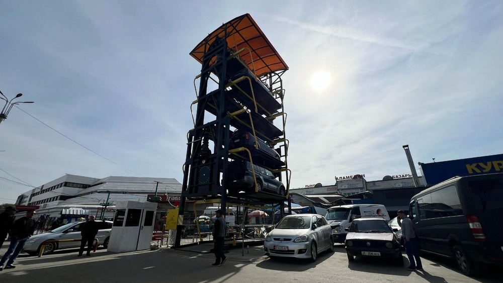 Возле Аламединского рынка установили роторную парковку на 10 машин
