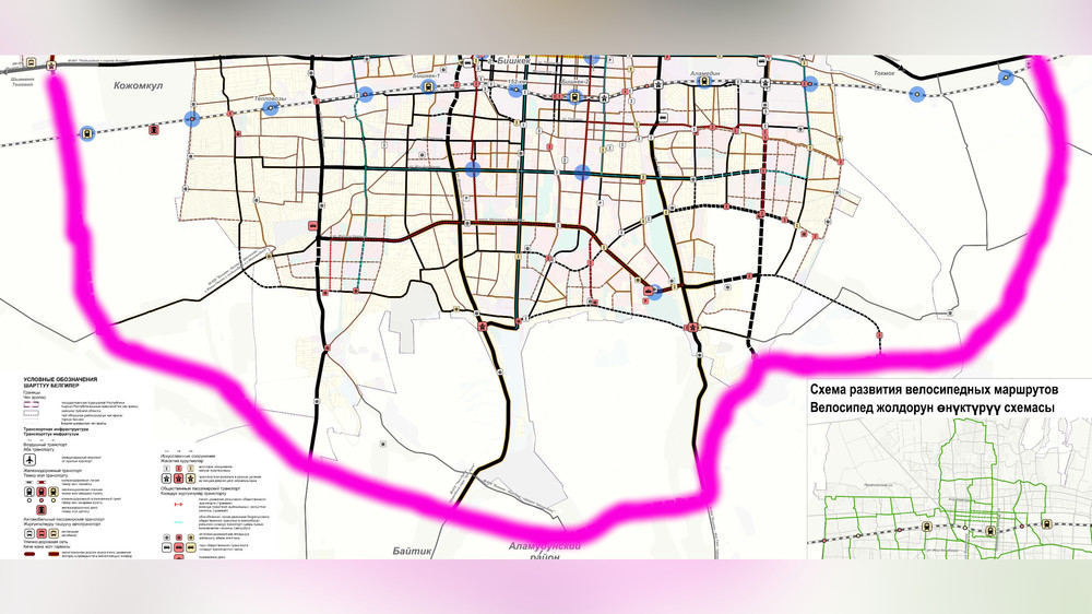 Бишкек (АКИpress) - В новом генеральном плане столицы предусмотрено строительство южной объездной дороги, которая позволит полностью закольцевать транспортную систему вокруг Бишкека. Об этом 27 октября сообщил первый заместитель главы муниципального предприятия «Бишкекглавархитектура» Азирет Акимов в интервью агентству АКИpress.