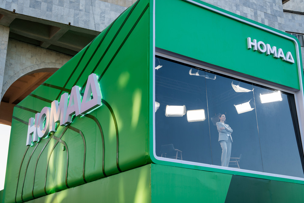 Вещание из этой студии будет вестись на фоне уникального вида на площадь Ала-Тоо, памятник Манасу и государственный флаг. Фронтальная часть студии выполнена из стекла. Горожане смогут наблюдать за работой ведущих. Дизайн корпуса студии выполнен в темно-зеленом цвете — это фирменный цвет «Номад-ТВ». Во внешнем дизайне угадываются элементы нашей юрты, здесь же название канала и скоро появится QR-код — ссылка на официальный сайт телеканала.