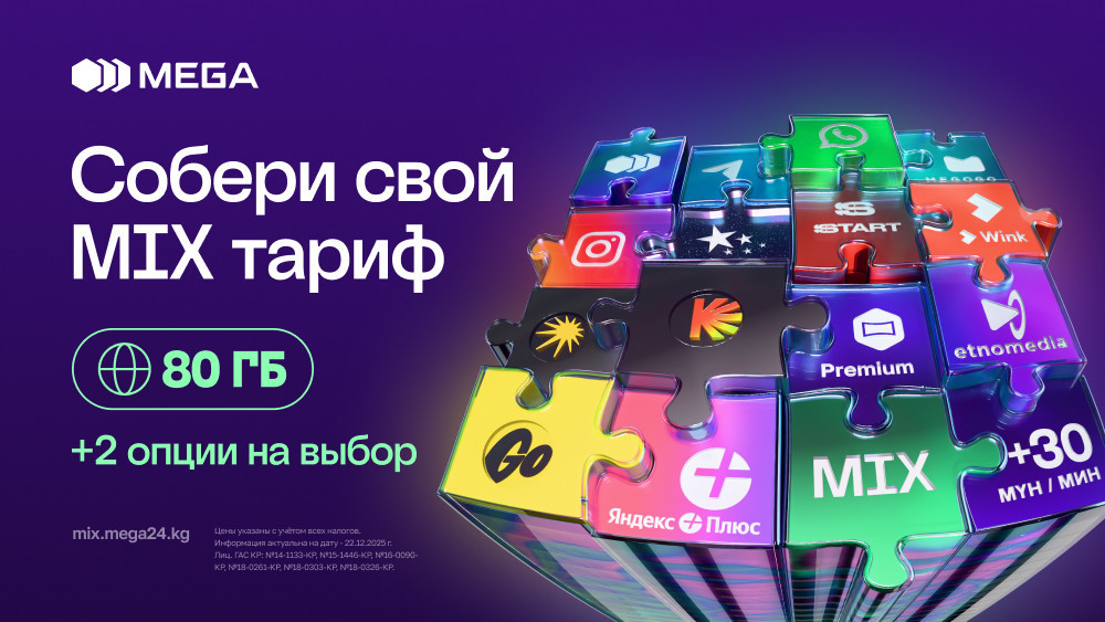 Бишкек (АКИpress) - Тариф MIX от государственного оператора сотовой связи MEGA — современный и гибкий формат связи, который легко адаптируется под ритм жизни каждого абонента.