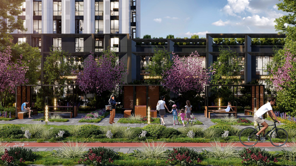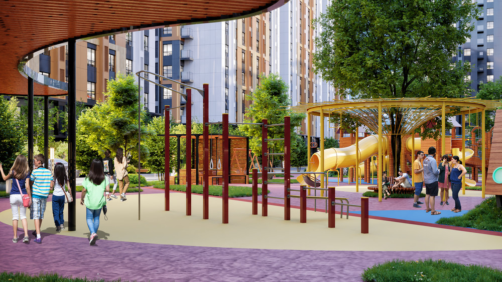 Микрорайон отличается от других проектов: здесь нет хаотичной застройки, минимизирована плотность домов, есть места для парковки и безопасные зоны для детей. Внутри микрорайона предусмотрены школа, детский сад, магазины, фитнес-зоны, благоустроенные скверы, современные детские и спортивные площадки. Площадь комплекса составляет 14,5 га, на территории предусмотрены 3000 парковочных мест.