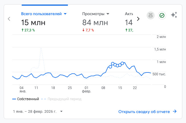 Бишкек (АКИpress) - Количество просмотров страниц сайтов информационного агентства АКИpress превысило 84 млн за два месяца 2026 года. Такие данные собрал сервис Google Analytics.