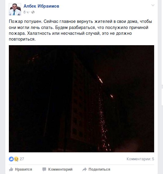Мэр Бишкека о пожаре на Панфилова-Фрунзе: Это не должно повториться